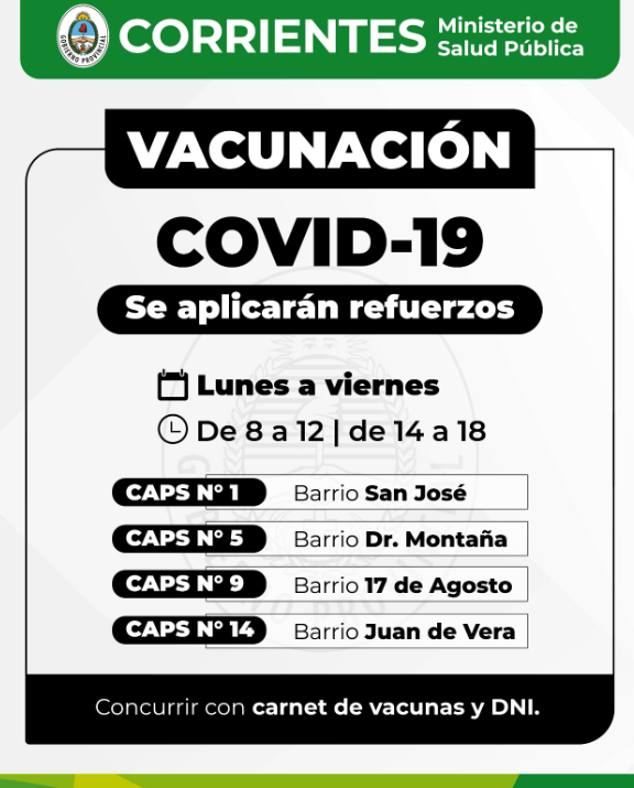 En la Capital, las dosis antigripales están disponibles en los Centros de Atención Primaria de la Salud (CAPS), en las Salas de Atención Primaria de la Salud (SAPS) de la Municipalidad de Corrientes y en los hospitales Ángela I. de Llano y pediátrico Juan Pablo II. En tanto, en el interior las dosis están disponibles en los distintos vacunatorios.