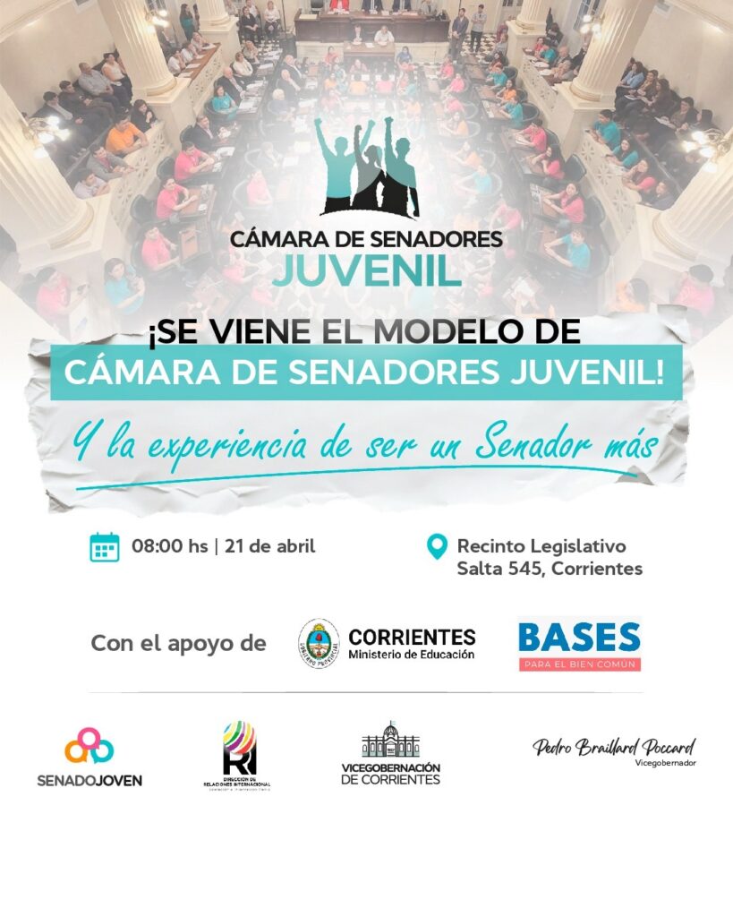 La Vicegobernación de la Provincia de Corrientes, a cargo del Dr. Pedro Braillard Poccard, en conjunto con el Ministerio de Educación de la Provincia, liderado por la ministra Ana Miño, presentan el Modelo Cámara de Senadores Juvenil, una iniciativa destinada a estudiantes del último año del nivel secundario de toda la provincia.
