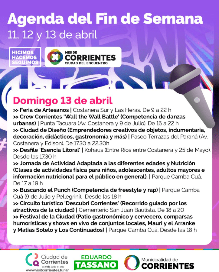 Para quienes no puedan asistir, pueden disfrutar del evento a través de las redes sociales de la Municipalidad de la ciudad de Corrientes.