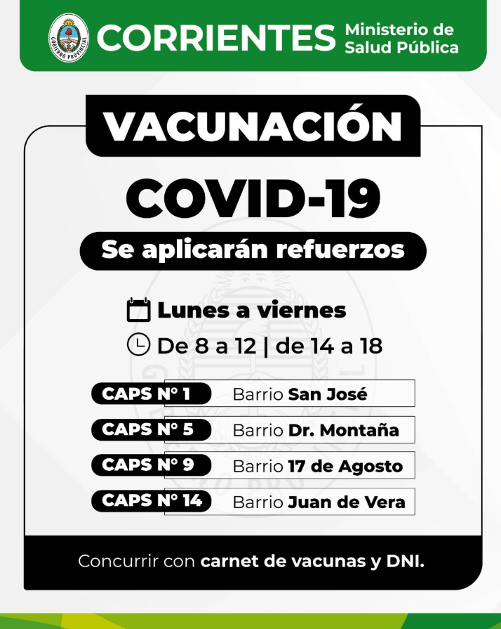 Se recuerda concurrir con DNI y carnet de vacunación, en el caso de los menores acompañados por un adulto.