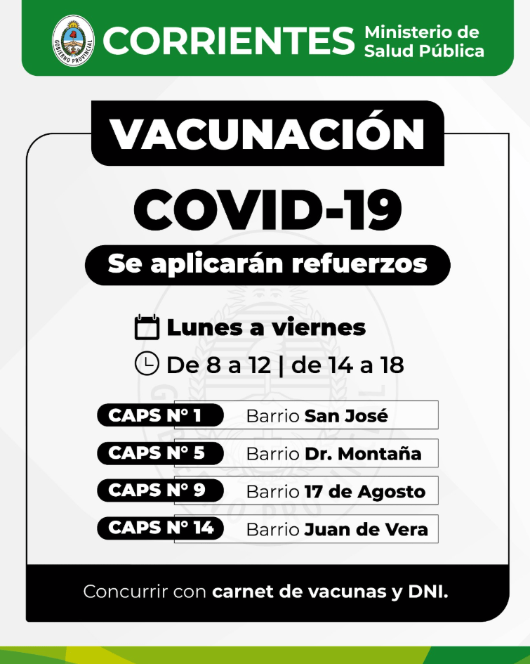 En la Capital, las dosis antigripales están disponibles en los Centros de Atención Primaria de la Salud (CAPS), en las Salas de Atención Primaria de la Salud (SAPS) de la Municipalidad de Corrientes y en los hospitales Ángela I. de Llano y pediátrico Juan Pablo II. En tanto, en el interior las dosis están disponibles en los distintos vacunatorios.