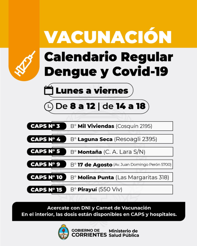 Cronograma Calendario/Dengue/Covid-19 Capital – Puntos de vacunación
