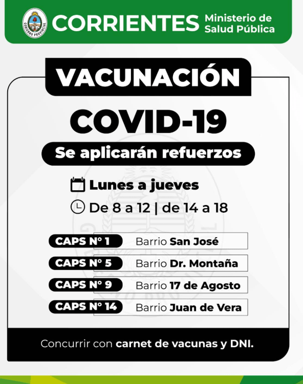 Se recuerda concurrir con DNI y carnet de vacunación, en el caso de los menores acompañados por un adulto.