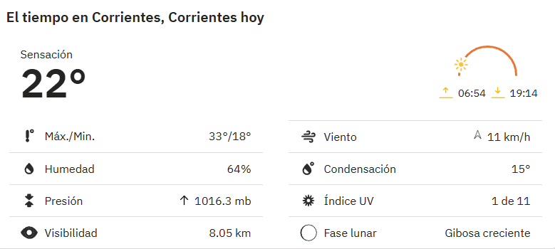 Por la mañana se espera que la temperatura alcance los 23 °C, con cielo mayormente nublado y viento del Sureste de entre 13 y 22 km/h.