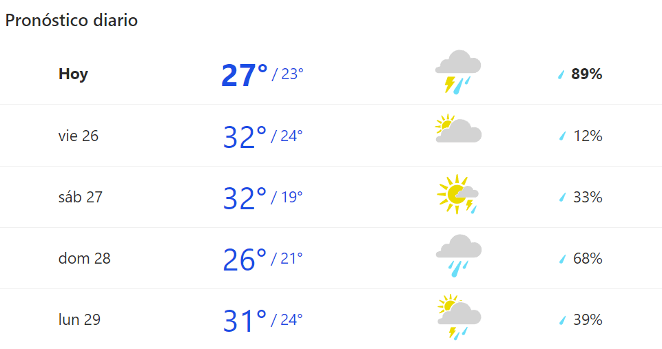 Pronóstico del tiempo para hoy, Jueves 25 de abril