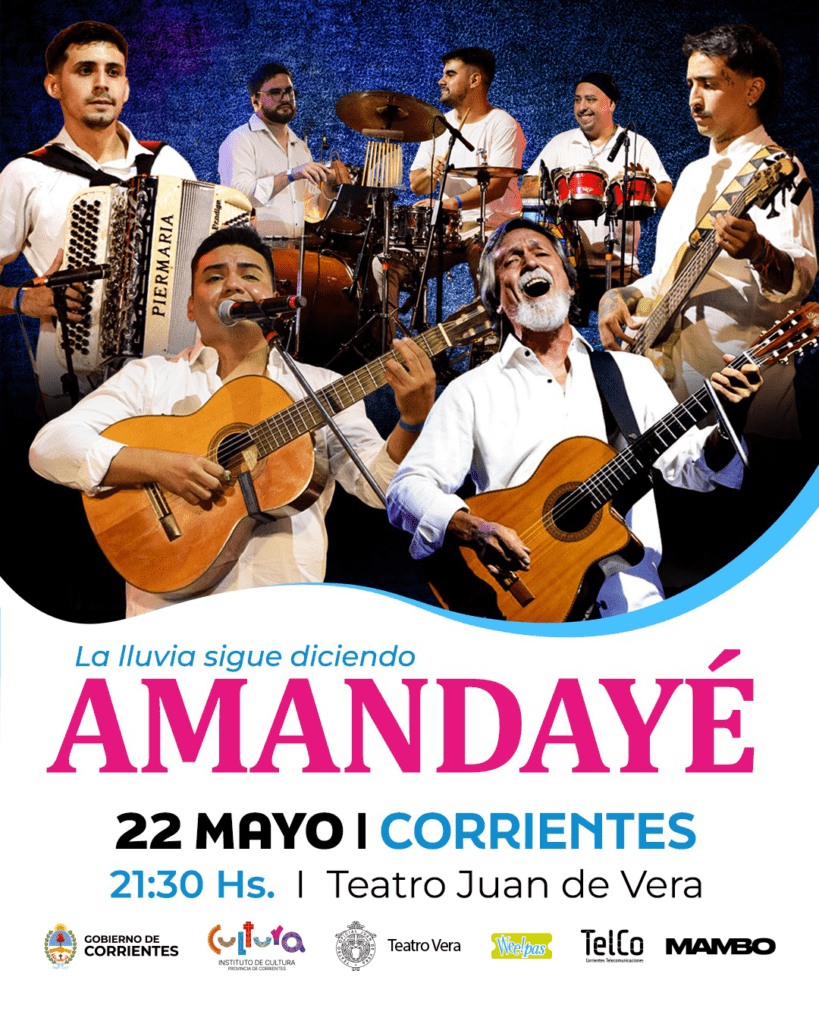 El grupo Amandayé anuncia una gira por los principales Teatros de la región durante el mes de mayo de 2026. El viernes 22 de mayo a las 21,30 horas, presentará un show especialmente preparado titulado “La lluvia sigue diciendo”, en el Teatro Oficial Juan de Vera de Corrientes.