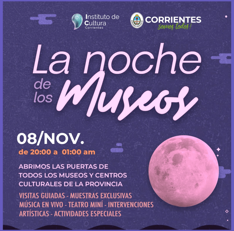 La Noche de los Museos es una oportunidad para descubrir o redescubrir el patrimonio cultural de Corrientes. Los museos provinciales, cada uno con su propia identidad y rica historia, serán los protagonistas de esta noche tan especial.