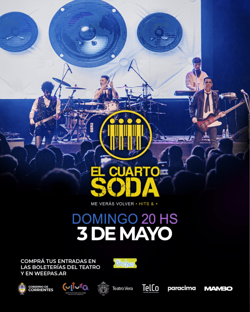 La banda de rock homenaje a Soda Stereo se presentará en Corrientes con un show imperdible en el emblemático Teatro Oficial Juan de Vera, el próximo domingo 3 de mayo a las 20 horas