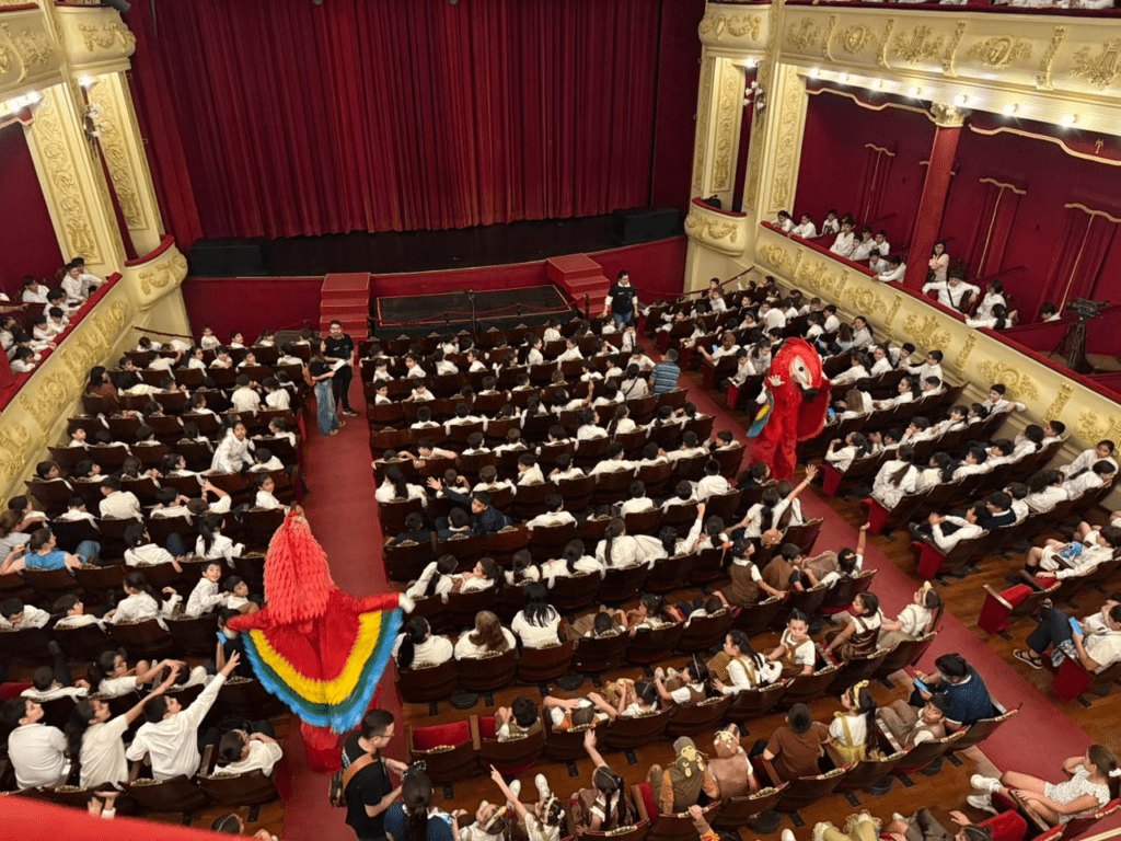 Con un entusiasmo difícil de contener, los chicos y sus docentes hicieron fila para acceder al teatro, mientras por dentro el elenco y el equipo técnico; además de los docentes del equipo de Educaplay que se ocupa de realizar la transmisión en vivo vía Streaming por el canal de youtube en cada representación, se alistaban para entrar en acción en una nueva jornada artística.