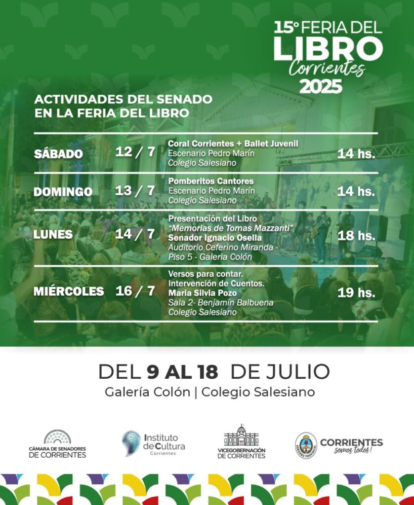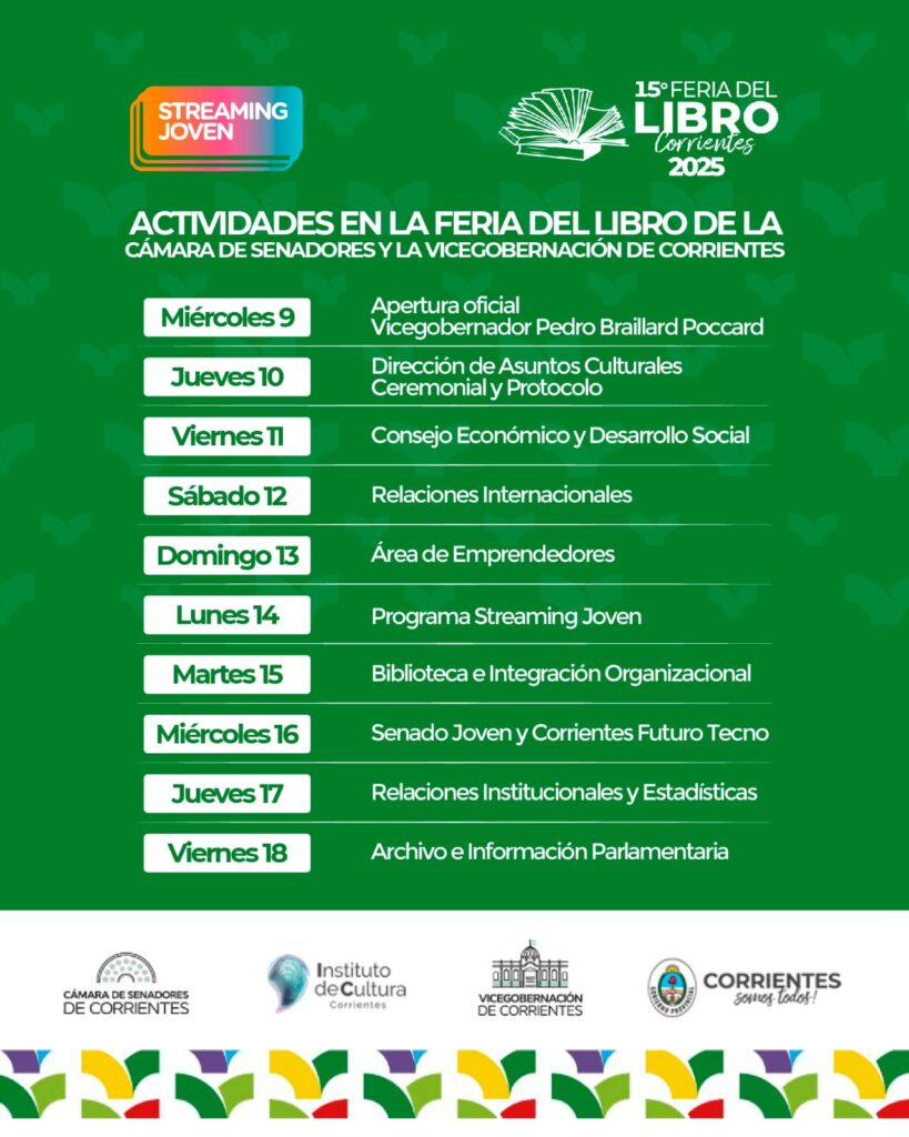 Estas actividades forman parte del compromiso del Senado provincial con la cultura, la participación ciudadana y la proyección institucional en espacios abiertos y plurales. La propuesta se realiza en articulación con el Instituto de Cultura de Corrientes y forma parte de la programación oficial de la feria.