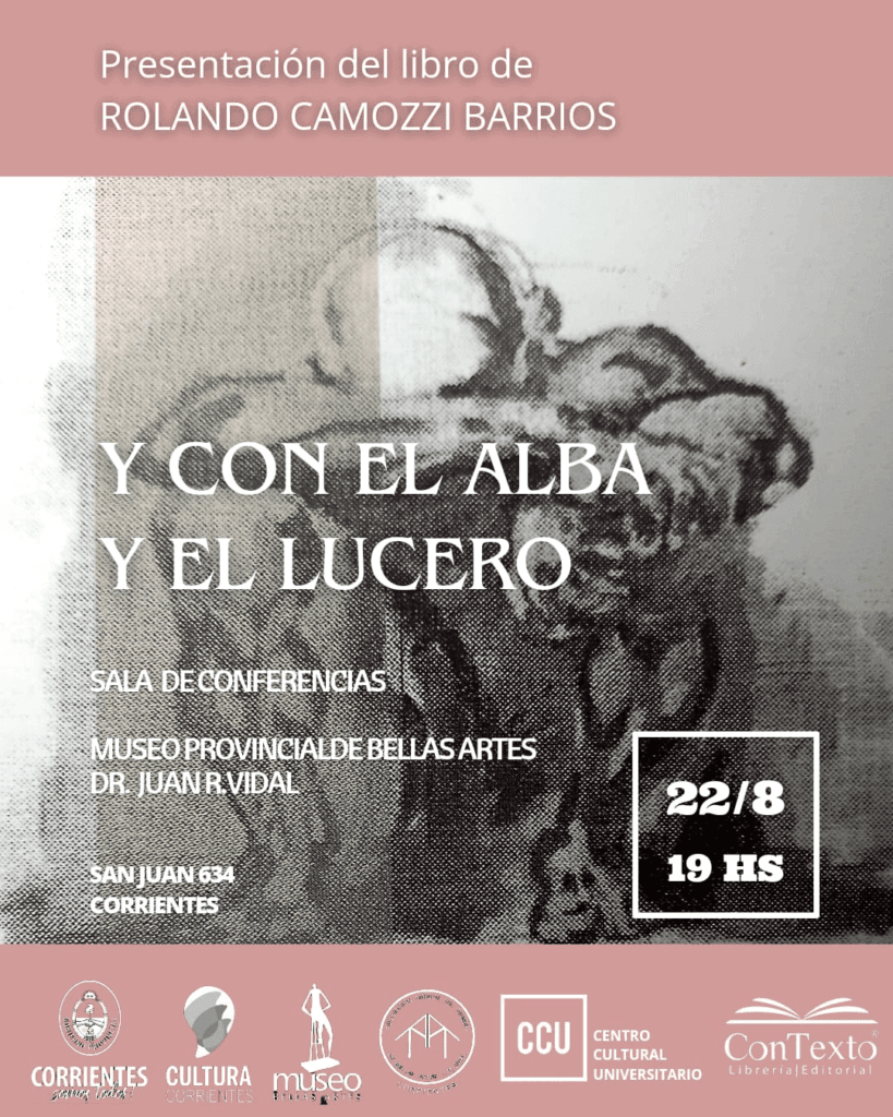 El Instituto de Cultura de Corrientes invita a la presentación del libro “Y con el alba y el lucero” del escritor Rolando Camozzi Barrios, que se realizará este jueves 22 de agosto, a las 19, en la sala de conferencias del Museo de Bellas Artes “Dr. Juan R. Vidal” (San Juan 634). El acceso es libre y gratuito.