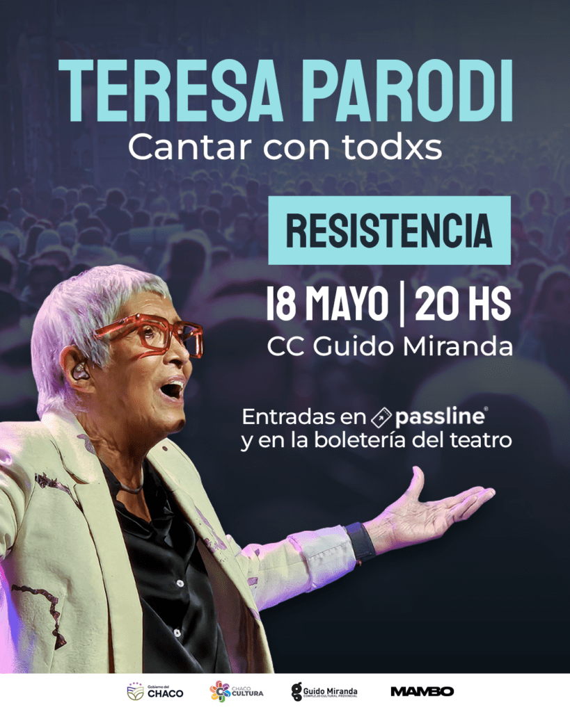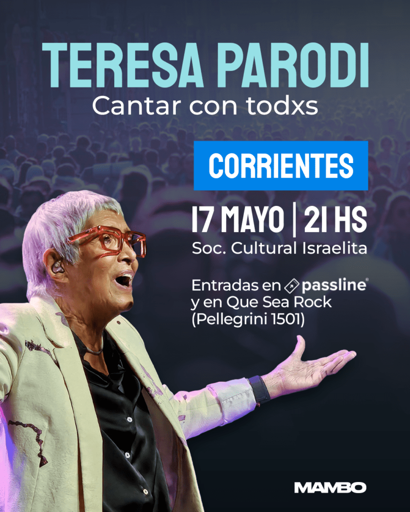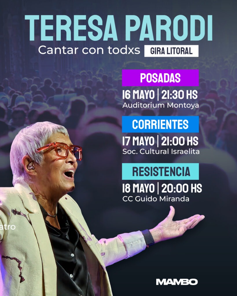 La reconocida cantante y compositora Teresa Parodi regresa al Litoral para reencontrarse con su gente y compartir su más reciente obra discográfica “Retratos de familia”. En el marco de su gira “Cantar con todxs”, ofrecerá dos conciertos imperdibles: el 17 de mayo en Corrientes (Sociedad Cultural Israelí) y el 18 de mayo en Resistencia (Centro Cultural Guido Miranda). Las entradas ya están disponibles a través de passline.com y en los puntos de venta oficiales: la boletería del C.C. Guido Miranda (Colón 164, Resistencia) y Que sea Rock (Pellegrini esquina San Lorenzo).