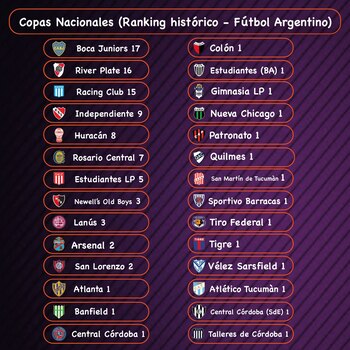 Si bien el nombre del trofeo se basa en la Supercopa Internacional, el certamen cuenta como Copa Nacional. El detalle de los equipos más ganadores del fútbol argentino en competiciones de este estilo. Ésta será la Copa Nacional N° 125 (se juegan desde 1900 con distintos nombres, formatos, duraciones y reglamentos, pero todas organizadas y homologadas oficialmente por AFA).