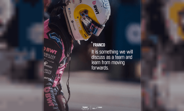 Por otra parte, en el posteo de Instagram, la escudería de la primera categoría de monoplazas destacó una frase de Franco Colapinto: “es algo que discutiremos como equipo y del que aprenderemos en el futuro”.