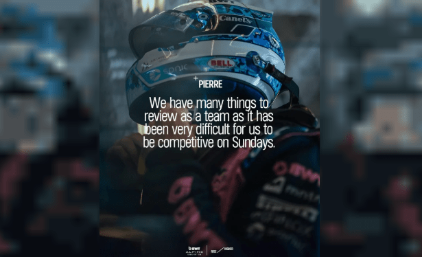 En la última imagen de la publicación, Alpine resaltó una frase de Pierre Gasly: “tenemos muchas cosas que revisar como equipo, ya que nos ha costado mucho ser competitivos los domingos”.