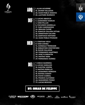 Vélez y Central Córdoba de Santiago del Estero se verán las caras en el estadio Gigante de Arroyito, a partir de las 16. Habrá un título en juego, ya que el Fortín accedió a este duelo decisivo por ser campeón de la Liga Profesional 2024 y el Ferroviario como campeón de la Copa Argentina que justamente le ganó a los de Liniers el mismo año. Dirigirá Facundo Tello (televisarán ESPN, Disney+ y ESPN Premium).