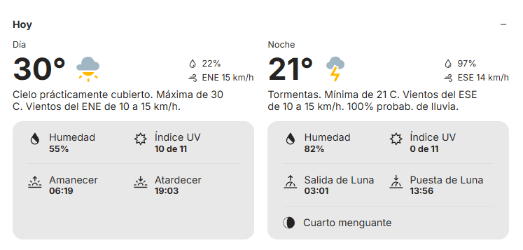 Las precipitaciones no serán intensas hoy, ya que se prevén chaparrones y tormentas aisladas. Los chaparrones se prevén para la mañana y las tormentas durante la tarde y la noche.