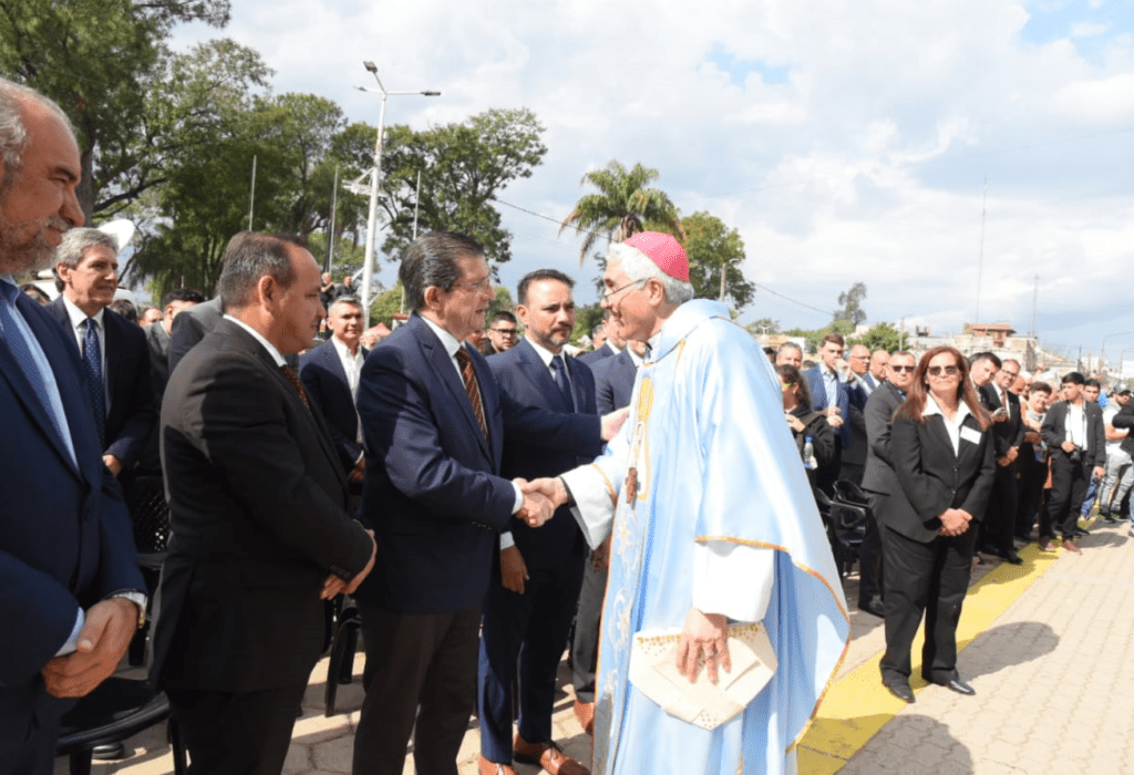 Al finalizar la celebración, Larregain pidió a la banda de la policía que entonen el Himno Nacional, para así pedir también por nuestra Patria.