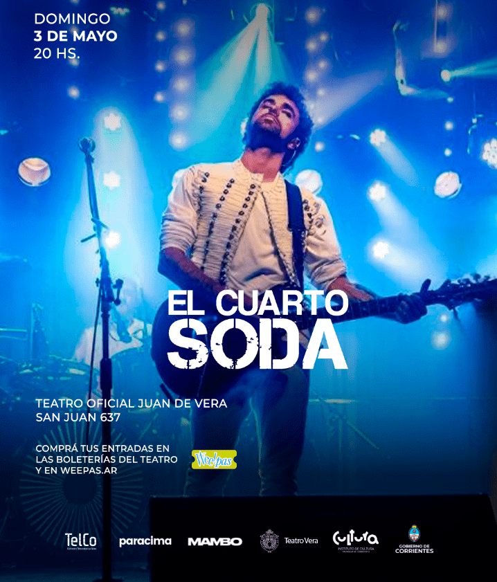 La banda de rock homenaje a Soda Stereo se presentará en Corrientes con un show imperdible en el emblemático Teatro Oficial Juan de Vera, el próximo domingo 3 de mayo a las 20.