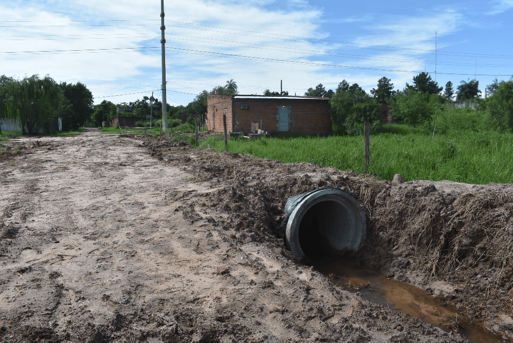 En la actualidad el material provee a este sistema de desague pluvial de una línea simple de tubos de hormigón de 1,50m de diámetro a lo largo de 400 metros, construyéndose cámaras de inspección cada 50 metros con sus respectivos sumideros, lo que totaliza en siete bocas de tormenta. Los trabajos continúan, pese a las dificultades climáticas, previéndose el nuevo entubado hasta ruta 5, que rematará en una importante cámara colectora.