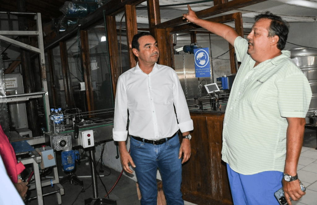Antes, Valdés se dirigió a la fábrica de Aguas “Aguaí” que se ubica en el predio del Complejo Aventura Esquina, de la localidad homónima. Allí fue recibido por uno de los propietarios, Jorge Cortéz quien lo llevó a recorrer el edificio para observar el proceso de producción, a través del cual se genera agua saborizada, jugos, gaseosas y hielo, además del embotellamiento de dicho contenido.