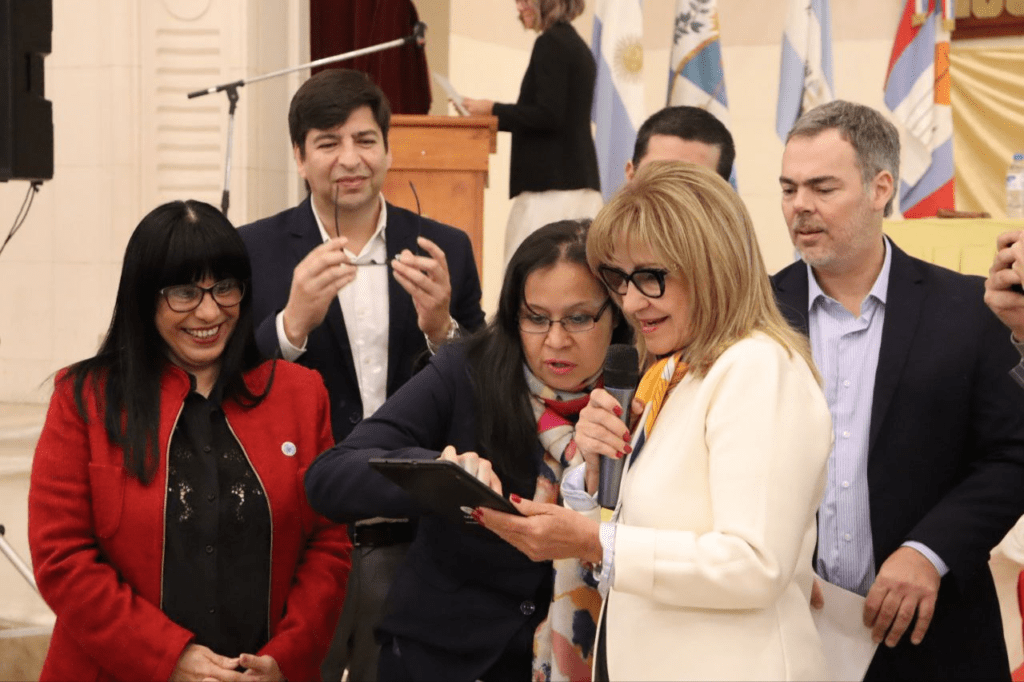 Durante el acto de esta mañana se realizó la entrega de tablets oficiales del Ministerio destinadas al cuerpo docente y administrativo. Estos dispositivos estarán configurados para el uso exclusivo de la plataforma de Gestión Educativa, asegurando un acceso simple y uniforme. La entrega fue acompañada de una breve presentación institucional a cargo de la Ministra.