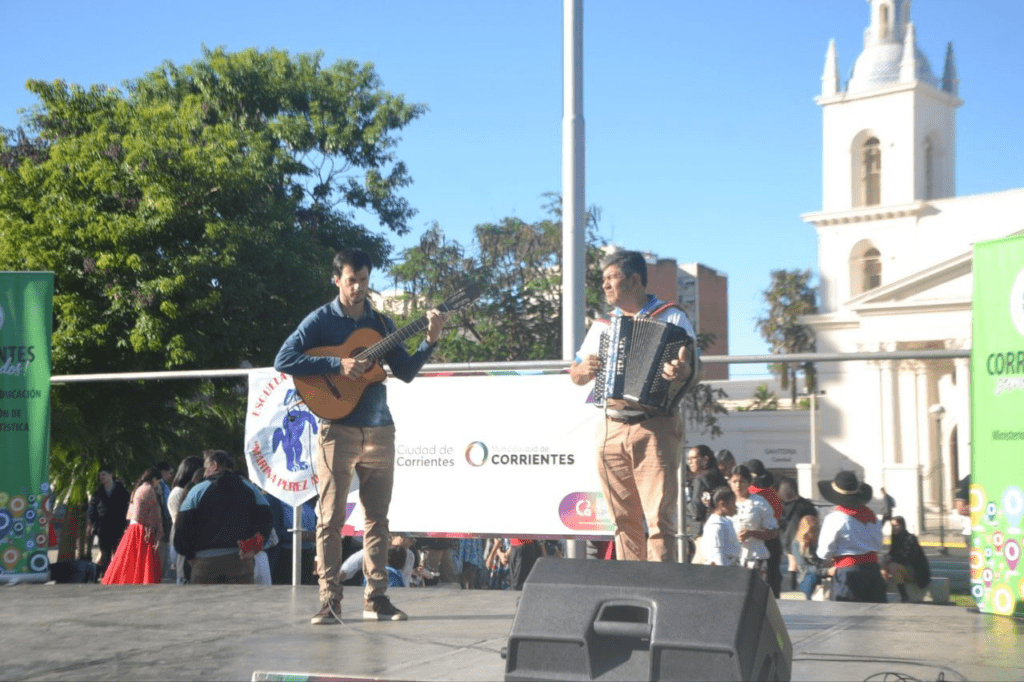 En el marco de los festejos por el del Mes de Corrientes, la plaza Cabral (Hipólito Yrigoyen, entre Santa Fe y San Lorenzo) fue escenario esta mañana del encuentro “Ñande mba’eporã”- Nuestro Arte. Con el objetivo de promover la preservación de los valores culturales de la provincia, en el lugar hubo exposición de producciones audiovisuales números artísticos de música, danza y teatro.