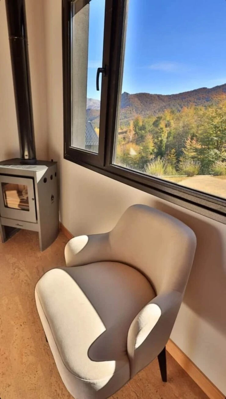 Por último, en otro sector de la casa se encuentran las habitaciones, por lo que la suya cuenta con un cómodo sillón individual pegado a la ventana para poder apreciar la hermosa vista que le ofrece la ciudad de Bariloche.