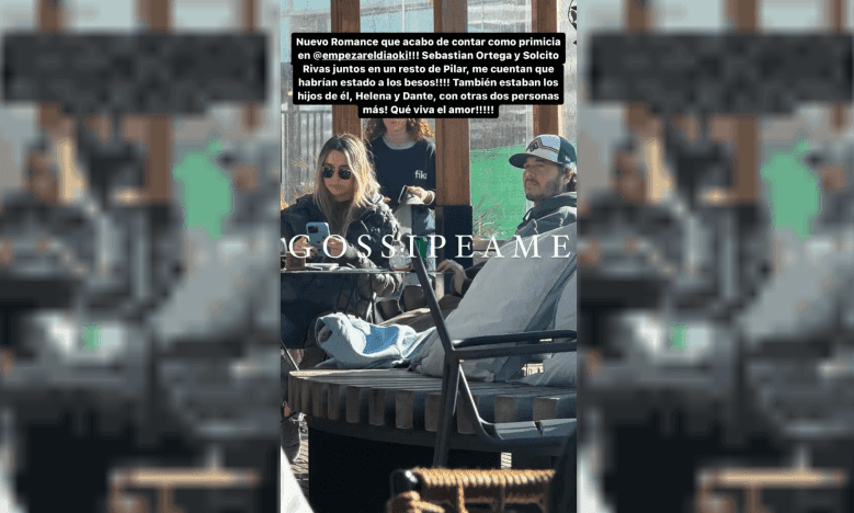 La instagrammer Pochi de @gossipeame difundió una foto de la pareja junto a información sobre ellos: “¡Nuevo romance! Sebastián Ortega y Solcito Rivas juntos en un resto de Pilar, me cuentan que habrían estado a los besos”, y agregó: “También estaban los hijos de él, Helena y Dante, con otras dos personas más”.