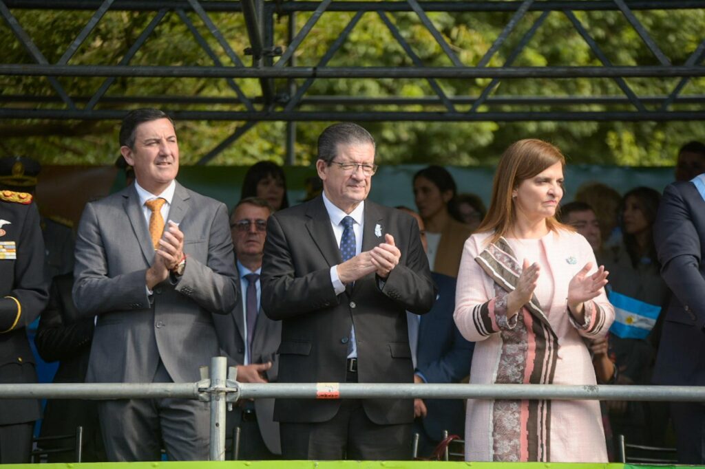 El vicegobernador, Pedro Braillard Poccard junto al gobernador Gustavo Valdés y el intendente de la ciudad de Corrientes, Eduardo Tassano, encabezaron esta mañana los actos oficiales por el 209° aniversario de la declaración de la Independencia.