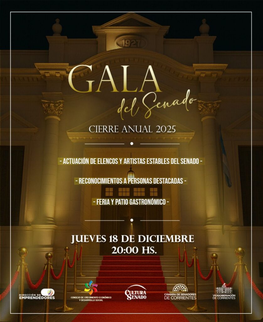 El Vicegobernador Pedro Braillard Poccard invita a la comunidad a participar de la Gala de Cierre Anual de Actividades 2025, que se realizará el jueves 18 de diciembre, a las 20, en las tradicionales escalinatas de la Legislatura Provincial. Será una noche especial que reunirá propuestas artísticas, reconocimientos institucionales y un espacio dedicado a emprendedores y a la gastronomía local, instalados especialmente para esta ocasión.