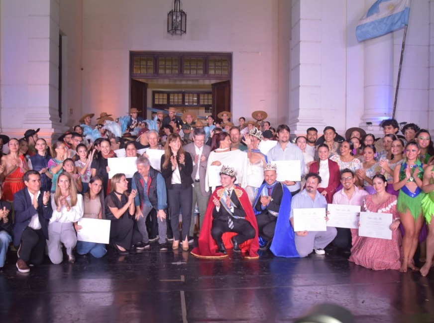 Uno de los momentos más conmovedores de la noche fue la obra “Corrientes tiene payé”, homenaje a Osvaldo Sosa Cordero, con guion de Mauro Santamaría, quien además realizó una interpretación profundamente emotiva, logrando una conexión directa con el público. El espectáculo, de alto nivel artístico, integró música en vivo, danza y actuación, destacándose por su calidad integral y por poner en valor la esencia del chamamé y el carnaval como expresiones identitarias.