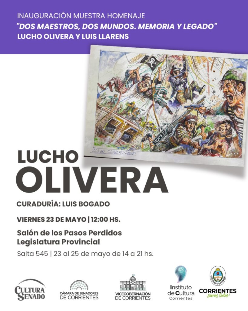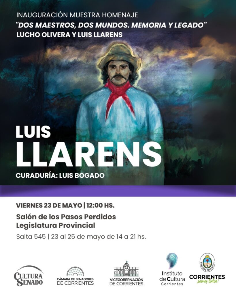 En el marco de la 7ma edición de ArteCo, la Feria de Arte Contemporáneo de Corrientes, el Instituto de Cultura de la Provincia y la Vicegobernación a través de Cultura Senado, presentan: Dos maestros, dos mundos. Memoria y legado, muestra homenaje a Lucho Olivera y Luis Llarens.
