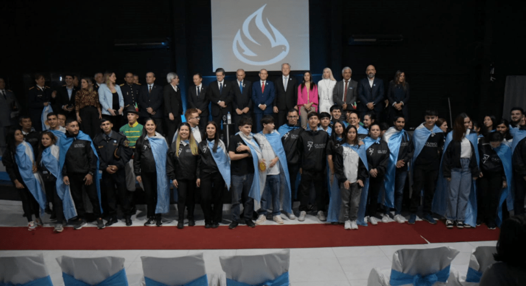 En este sentido resaltó especialmente la vocación de servicio de los “Ángeles del puente” y sostuvo “cuando los veo aquí, a los que suelo cruzar porque me gusta ir a cruzar el puente a veces, y los veo, estando alerta, recorriendo, la verdad es que les agradezco y los felicito porque nos hacen sentir que en nuestra juventud hay por sobre todas las cosas el mejor de los sentimientos. Y cuando están sirviendo al prójimo y lo hacen, nada más y nada menos que con nuestra bandera argentina en los hombros, porque todos deseamos que nuestra patria esté incluida profundamente en los mejores sentimientos”.