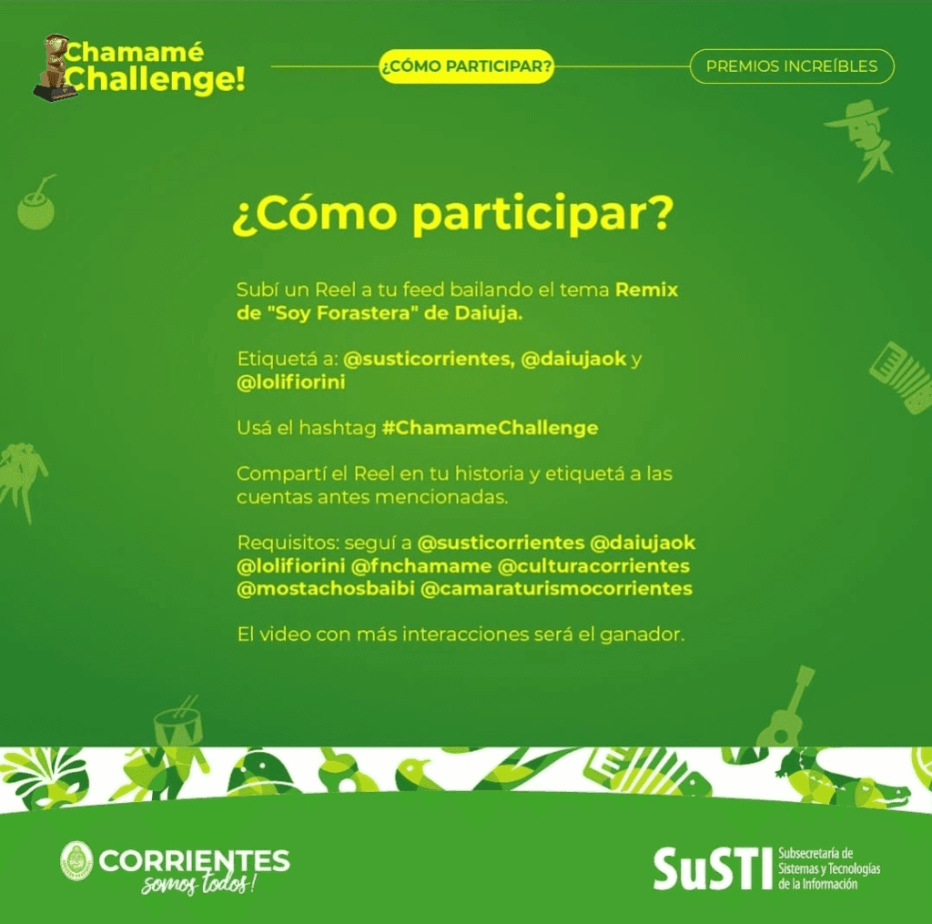El #ChamameChallenge es una oportunidad perfecta para conectar con la música y la cultura de Corrientes, mientras se disfruta de una experiencia divertida y con grandes recompensas.