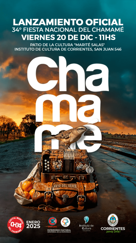 El Gobierno de Corrientes, a través del Instituto de Cultura, realizará este viernes 20 de diciembre, a las 11, en el Patio de la Cultura Marité Salas (San Juan 546) , la presentación oficial de la 34ª Fiesta Nacional del Chamamé, 20ª Fiesta del Chamamé del Mercosur y 4ª Celebración Mundial, bajo el lema “Chamamé, avío del alma”.