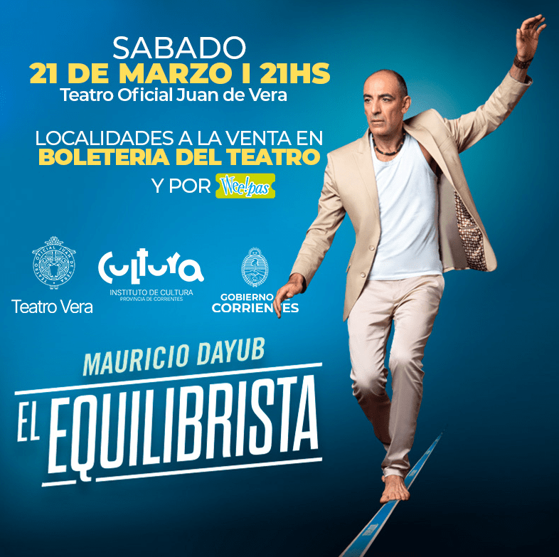 El próximo sábado 21 de marzo, “El Equilibrista” llega a Corrientes, con Mauricio Dayub en una de las obras más emocionantes y aclamadas del teatro argentino.