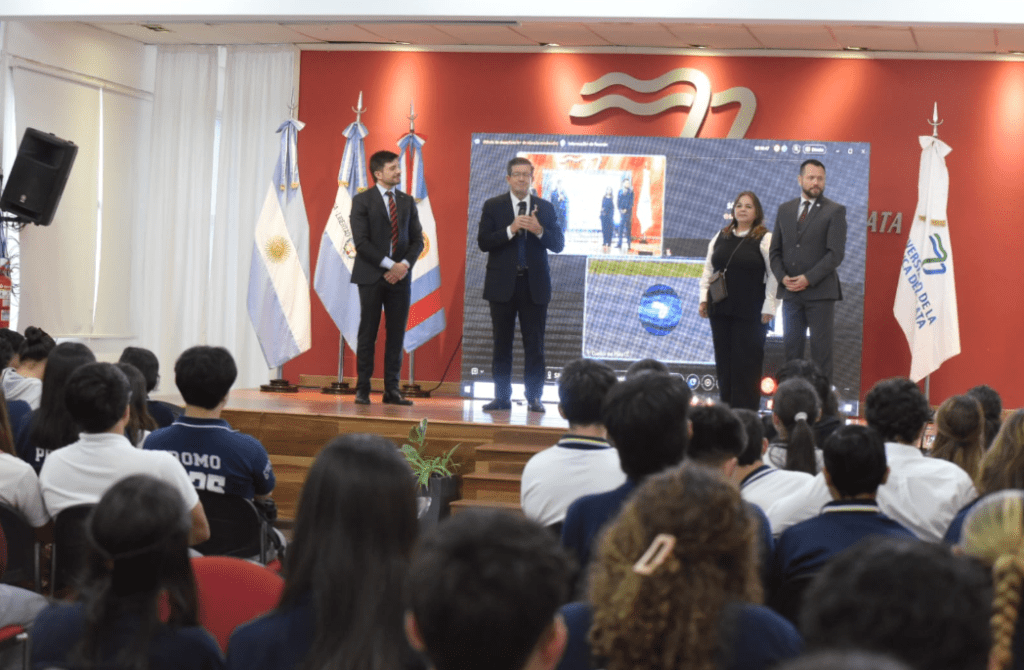Luego, brindó detalles acerca de cómo funciona la inteligencia artificial, de qué manera uno lo puede empezar a pensar desde la influencia en nuestras vidas y de qué manera también, ya se traspasa esta cuestión de la inteligencia artificial, queramos o no. Hizo una exploración con los estudiantes de secundaria de las distintas escuelas, tanto públicas como privadas, en el salón auditorio de la Universidad.