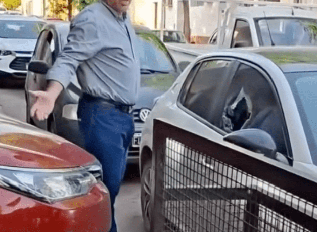 Un ataque de furia interrumpió la mañana en Alta Gracia cuando un hombre, al ver su cochera bloqueada, tomó una llave cruz y destrozó el vidrio lateral de un Peugeot 208. El violento hecho, que quedó grabado en video, ocurrió en calle Urquiza al 300, al lado de una escuela y frente a un dispensario.