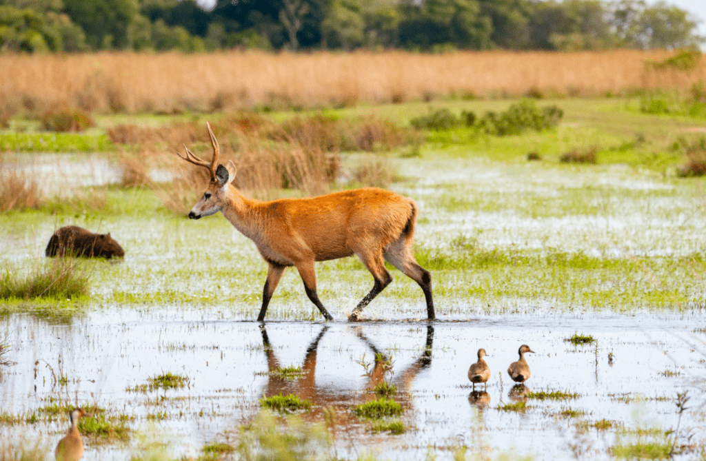 A través del plan Iberá, “se lo está viendo al territorio de manera abarcativa. Desde lo turístico, donde se generan más ingresos para las localidades. Pero también la manera en que la fauna se convierte en el atractivo para atraer a ese desarrollo. El Iberá ya es el destino de avistaje de fauna silvestre más importante de Argentina”, aseguró López. Ciervos, venados de las pampas, carpinchos y más de 370 especies de aves conforman esa riqueza de biodiversidad restaurada. “El yaguareté es la joya. También lo va a ser la nutria gigante, que tuvo a su primera familia liberada hace unos dos meses en San Alonso. Corrientes es la única provincia que tiene una familia de nutrias gigantes recorriendo sus lagunas y esteros”, destacó.