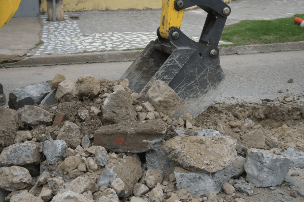 Los trabajos incluyen el corte y aserrado del pavimento para delimitar los sectores afectados, la remoción del material deteriorado y el picado hasta alcanzar la profundidad necesaria. Posteriormente, se realiza el relleno con hormigón de secado rápido, garantizando una solución más duradera y mejorando las condiciones de transitabilidad.