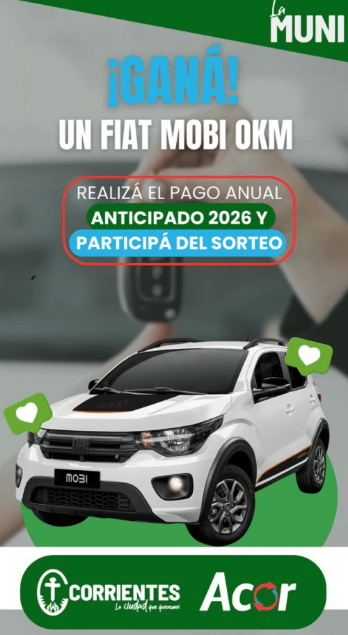 La Municipalidad de Corrientes invita a los contribuyentes a sumarse al Pago Anual Anticipado 2026 de los impuestos municipales, aprovechando importantes descuentos y la posibilidad de participar del sorteo de un auto 0km.