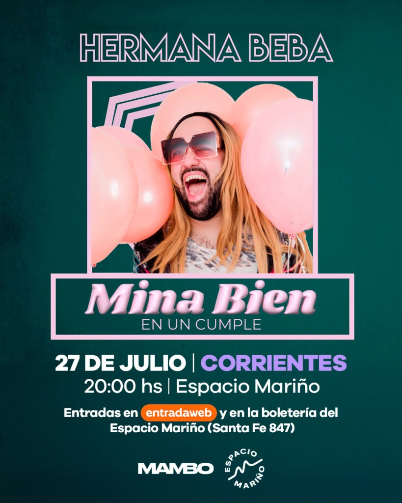 En «Mina Bien», un espectáculo unipersonal, Hermana Beba da vida a Fat, la carismática rubia que ha ganado fama por sus diálogos con figuras de la televisión y la política. Prepárate para una celebración sin precedentes, donde Fat festeja su cumpleaños en un encuentro hilarante y desopilante con el público.