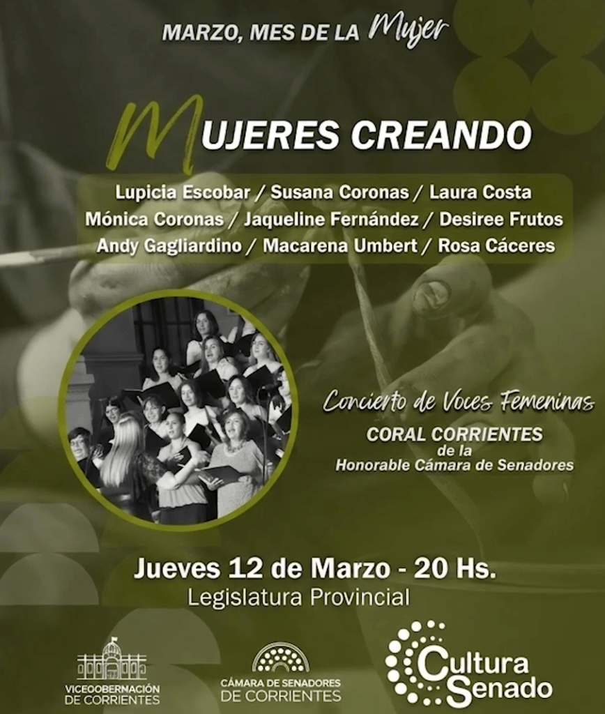 La actividad es organizada por la Cámara de Senadores de Corrientes con el apoyo del vicegobernador, Pedro Braillard Poccard, coordinado por Cultura Senado, como parte de la agenda cultural y de reconocimiento en el Mes de la Mujer.