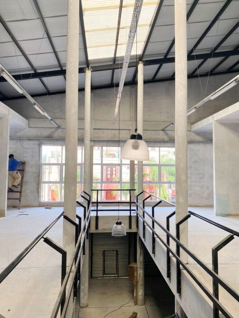 Actualmente los trabajos se centran en la colocación de cielorraso, pintura e iluminación del edificio a efectos de dejar terminados los 86 box en cuanto a su infraestructura interna incluido el cerramiento frontal de cada uno de los locales comerciales.