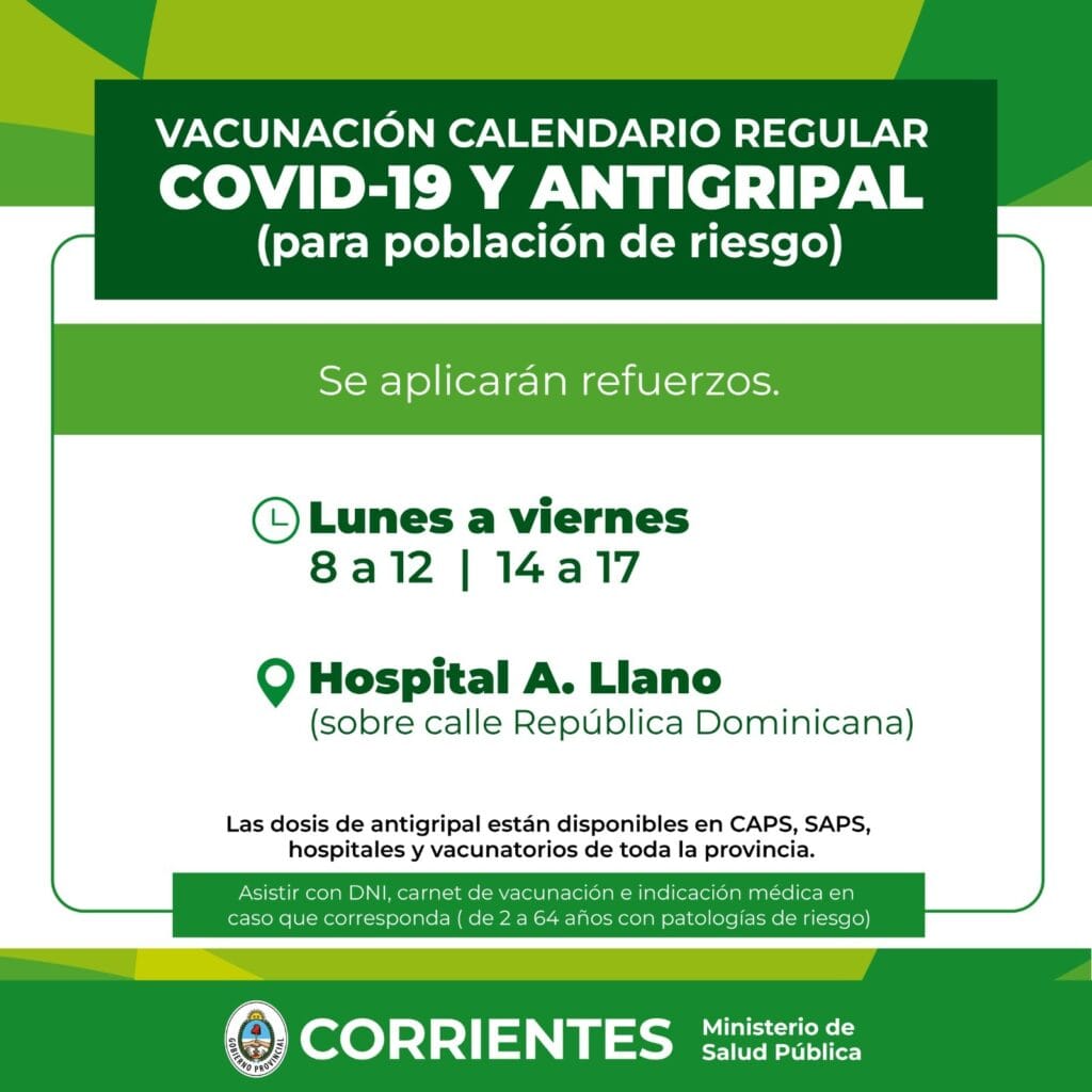 En la capital, las dosis antigripales están disponibles en los Centros de Atención Primaria de la Salud (Caps), en las Salas de Atención Primaria de la Salud (Saps) de la Municipalidad de Corrientes y en los vacunatorios de los hospitales Ángela I. de Llano y pediátrico Juan Pablo II. En tanto, en el interior las dosis están disponibles en los distintos vacunatorios.