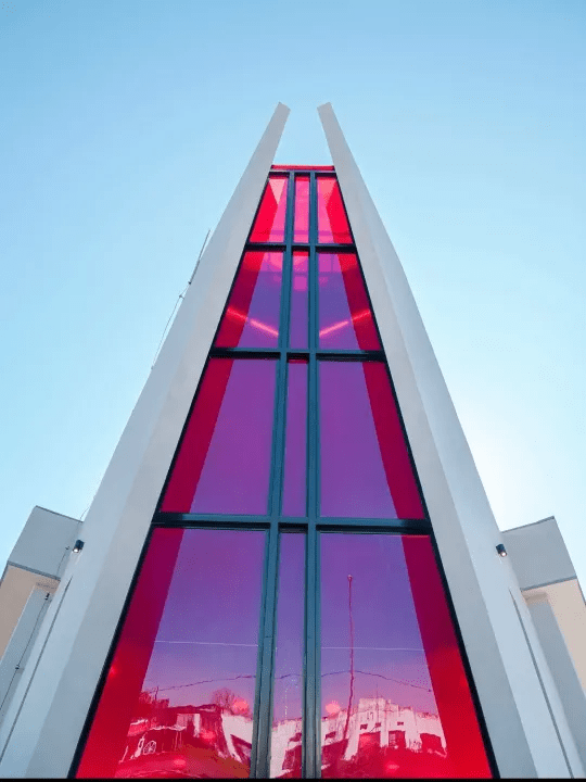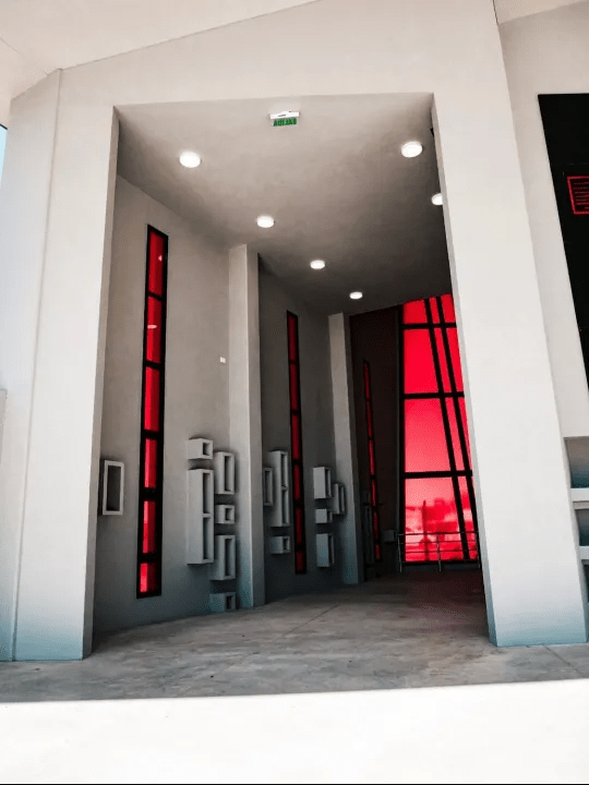 Actualmente se trabaja en el cielorraso, la instalación eléctrica y en una imponente torre trasera de 15 metros con un ventanal rojo que permitirá ver la estatua desde la ruta.