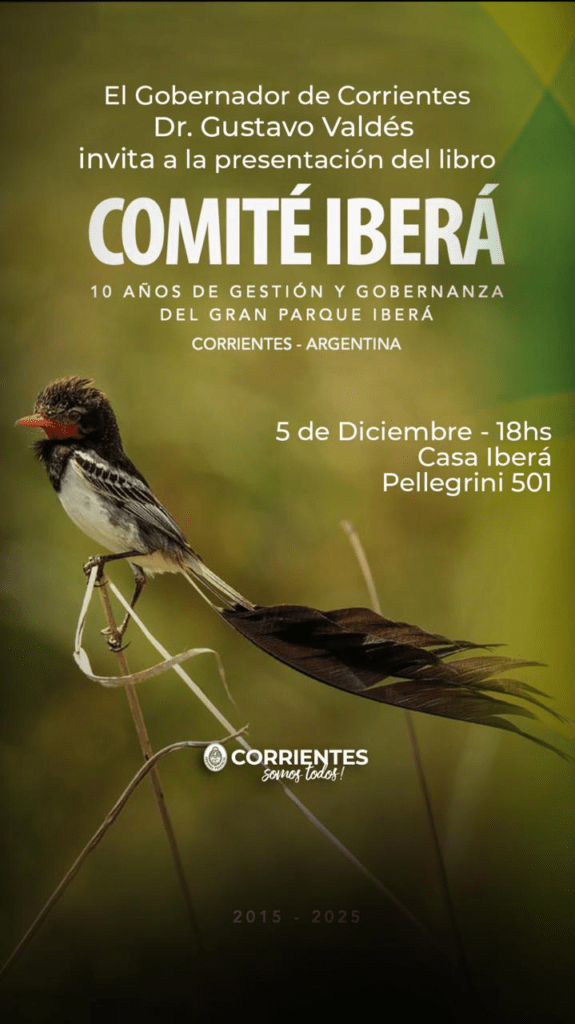 El gobernador Gustavo Valdés invita a la comunidad a la presentación del libro “Comité Iberá: 10 años de gestión y gobernanza del Gran Parque Iberá”. Un trabajo que resume una década de políticas públicas, articulación institucional y conservación ambiental en uno de los humedales más importantes de Sudamérica.