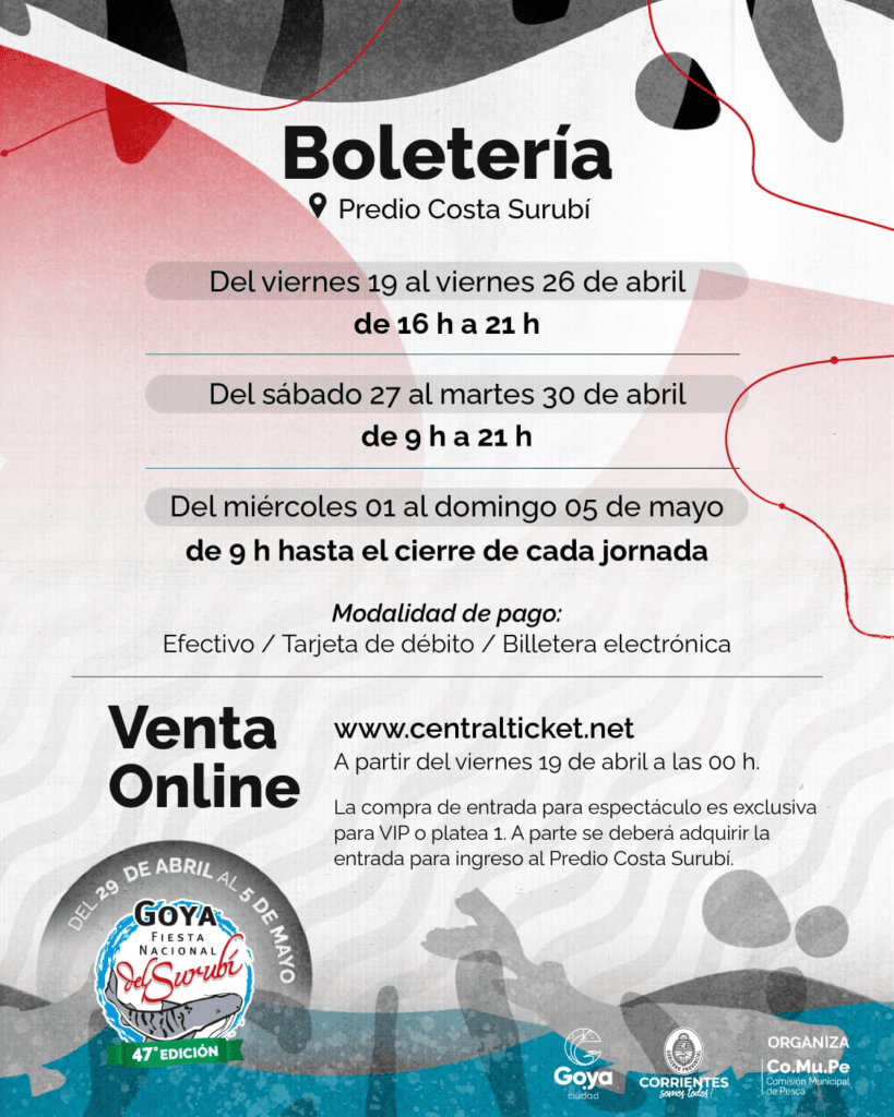 El único punto de venta oficial de entradas a la es la boletería ubicada en el Predio Costa Surubí en la avenida Primeros Concejales y el canal online CENTRAL TICKET. Se solicita precaución en la compra fuera de ellas, para prevenir estafas y entradas falsas.