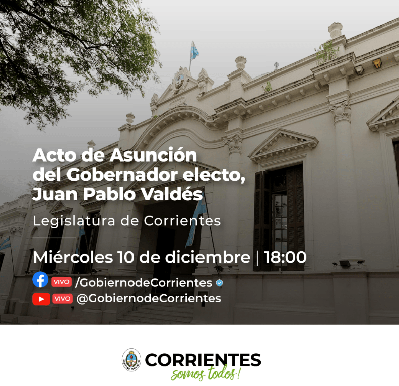 La provincia de Corrientes vivirá este miércoles 10 una jornada institucional clave con la jura y asunción de Juan Pablo Valdés, quien fue electo como nuevo gobernador el pasado 31 de agosto en las elecciones provinciales.